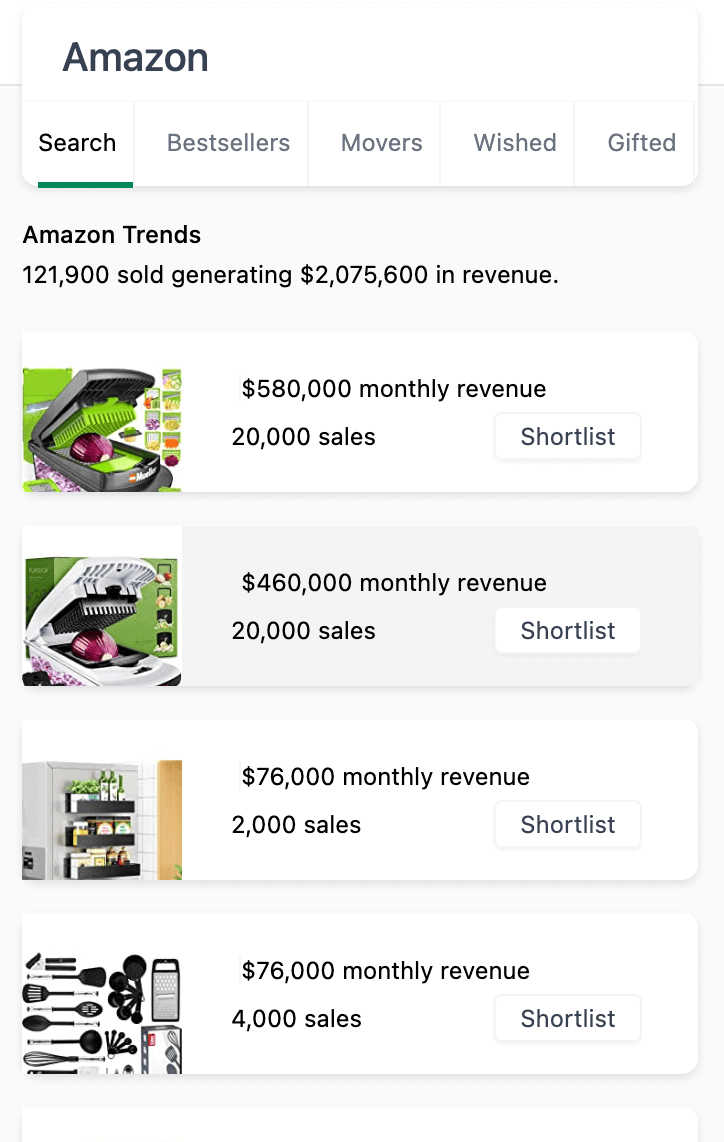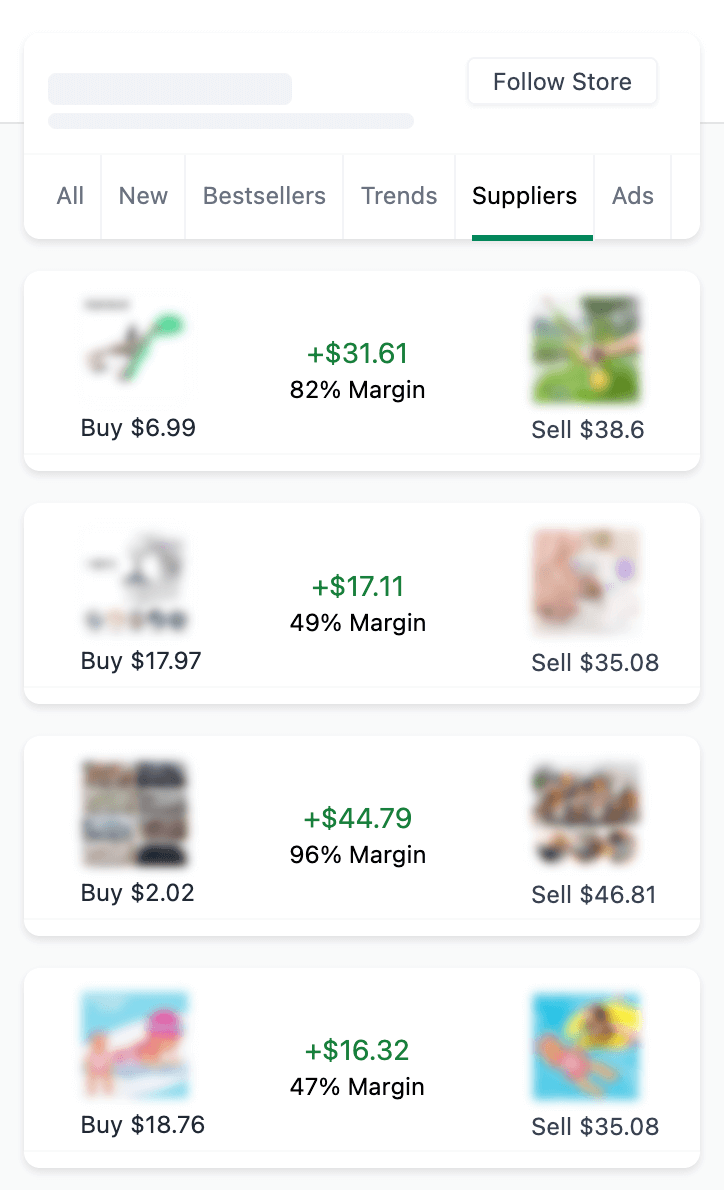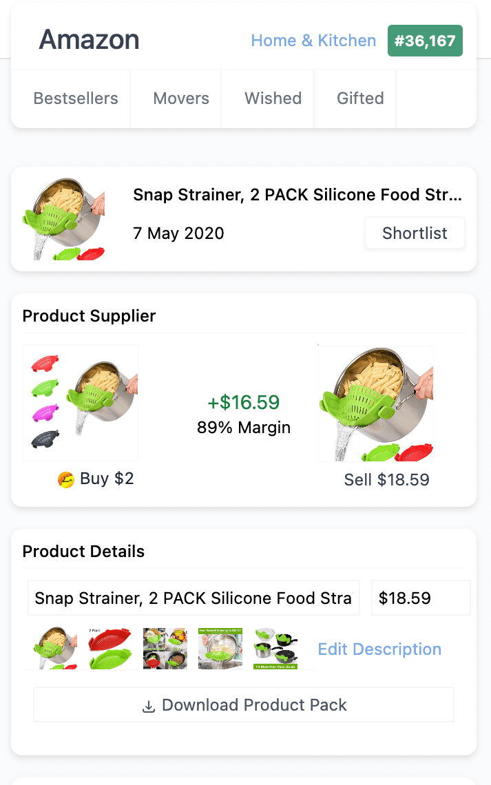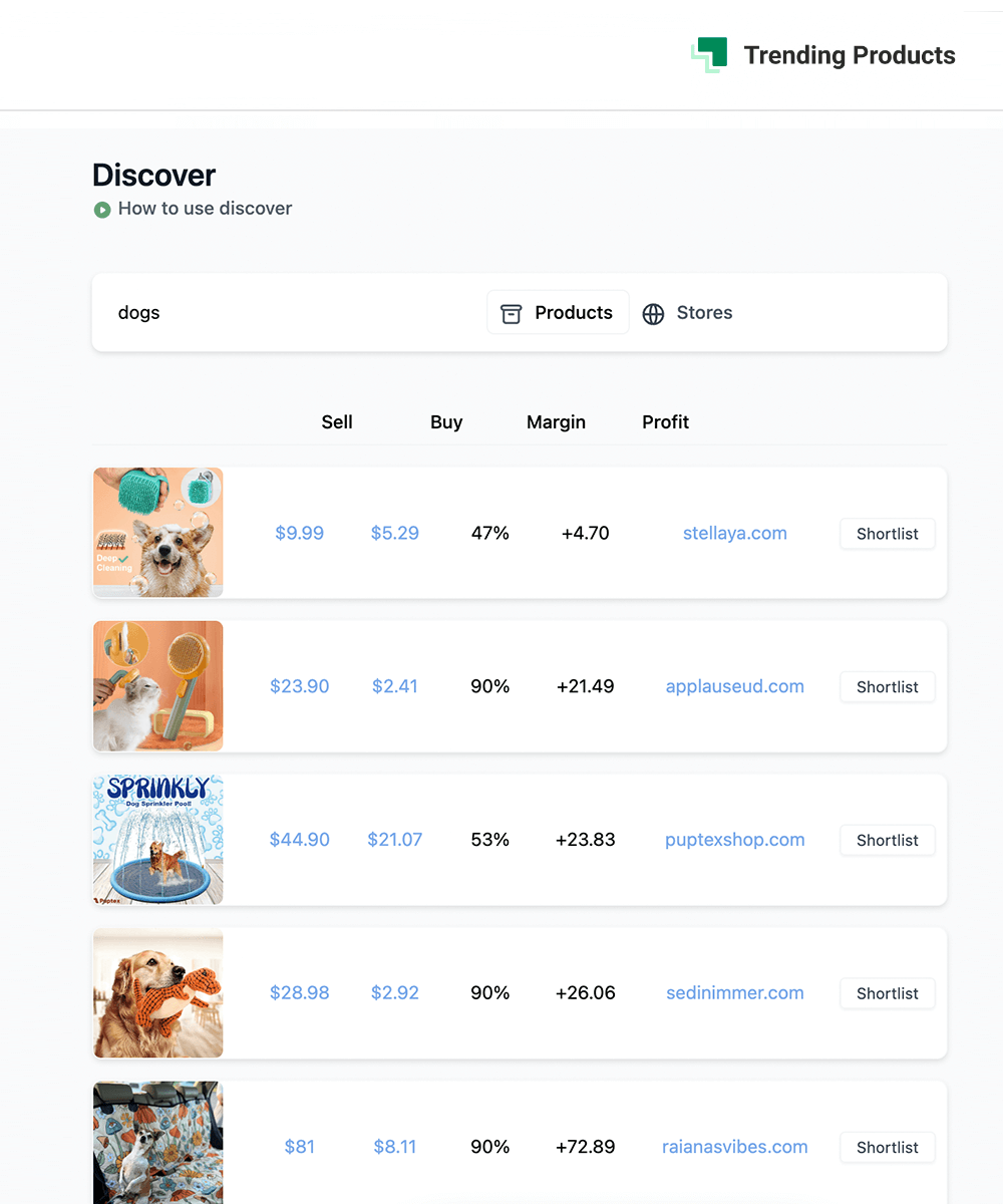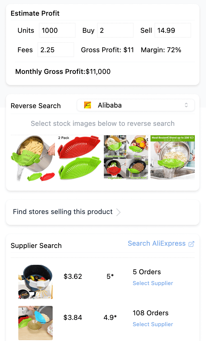 Search over 100,000+ product trends manually matched to suppliers by our team to provide profit margin data