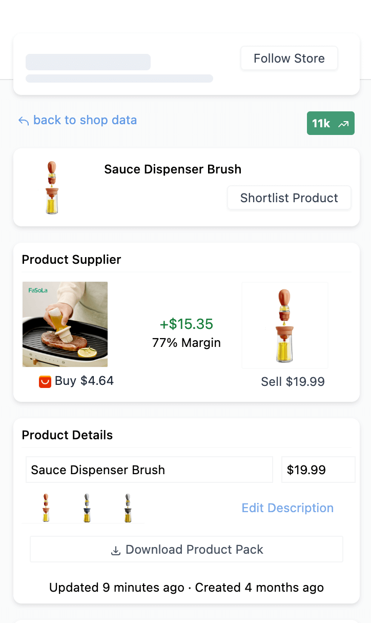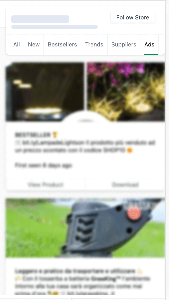 See how strong a product is, detect suppliers, download all product images and see every ad running for a product